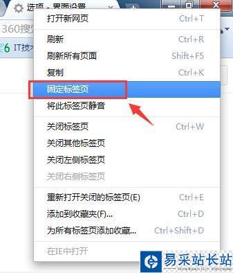 如果是極速瀏覽器,如果沒有這個選項那么可以通過下面的方法(右鍵 > 固定標簽頁)