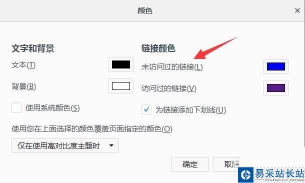 6、在未訪問的鏈接進行顏色選擇,如圖所示。