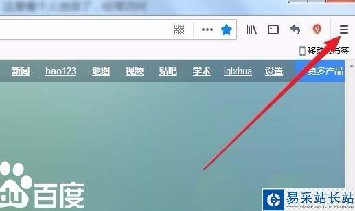 1、在打開的Firefox瀏覽器主界面,點擊右上角的“打開菜單”按鈕。