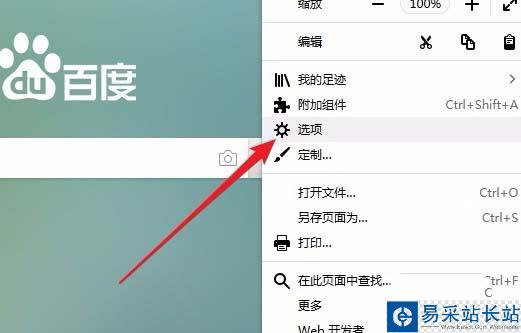 2、在彈出的下拉菜單中點擊“選項”菜單項。