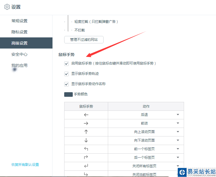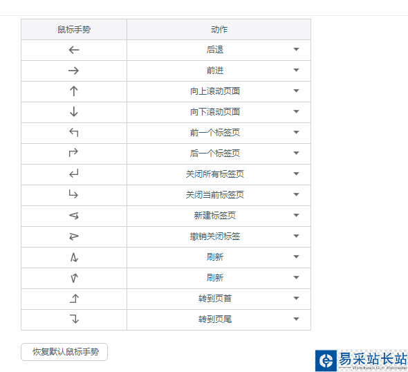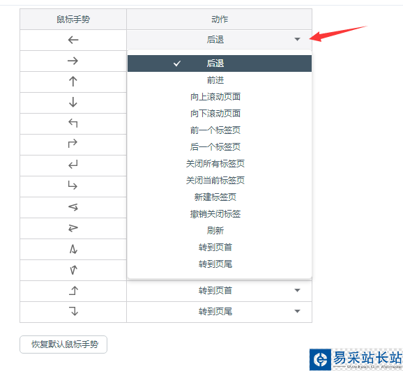 5、點擊下拉選項可以選擇每個手勢所要代表的指令