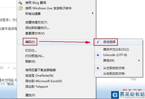 1. 在網頁上按一下鼠標右鍵,指向 [編碼],手動選擇相應的語言編碼。