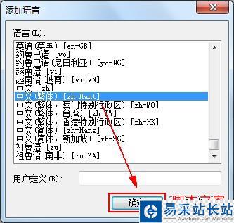 4. 在 [添加語言] 中,從列表中選取語言,再單擊 [確定]。