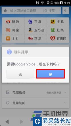 3)語音功能的使用需要下載安裝Google Voice。安裝提示進行下載安裝。(如下圖所示)