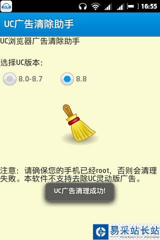 去廣告開始,選擇相應的版本,然后點擊下面的掃帚
