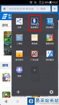 3)UC瀏覽器極速模式開啟。(如下圖所示)