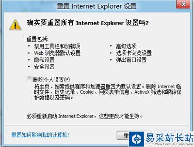 Step 3 - 提示確認,如果你想要一個更加干凈的IE,可以勾選刪除個人設置;