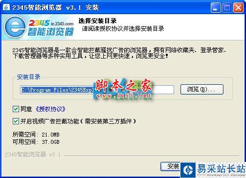 2345智能瀏覽器大小僅僅6M多,下載安裝速度確實(shí)很快,也不占內(nèi)存。新版的3.1還加入了開(kāi)啟視頻廣告攔截功能,當(dāng)然您可以選擇安裝。