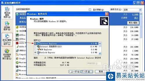 方法二;在控制面板,添加或刪除程序中選擇“添加或刪除Windows組建”選項,勾選Internet Explorer組件,然后重新安裝一下Internet Explorer。
