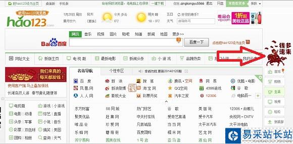 1、首先打開Hao123網址導航,然后從右側圖片導航上點擊進入“馬上發錢,錢多速來”廣告圖片,如下圖所示:
