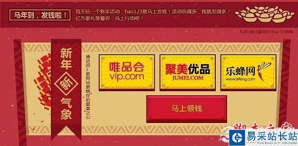 隨著春節的到來,以及2014年屬于馬年,如今各大網站媒體都流行推出“馬上發錢”、“馬上有錢”活動。最近Hao123網址導航推出的“馬上發錢”活動就受到諸多網友關注與體驗。針對還有不少網友對此活動不太了解,以下筆者介紹下Hao123馬上發錢攻略。