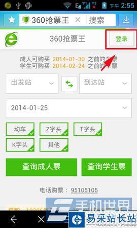 1)首先下載并安裝360搶票神器,然后點擊首頁的“360搶票王”,點擊右上角的登錄,登錄你的“12306”帳號。