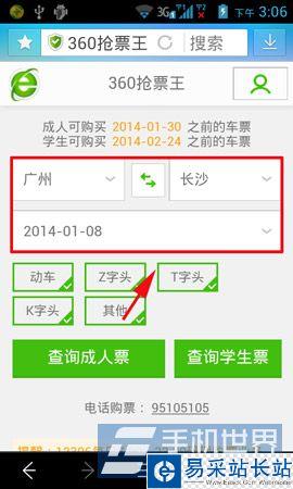 2)登錄12306后點輸入你的起始地和目的地,并輸入日期和火車類型。