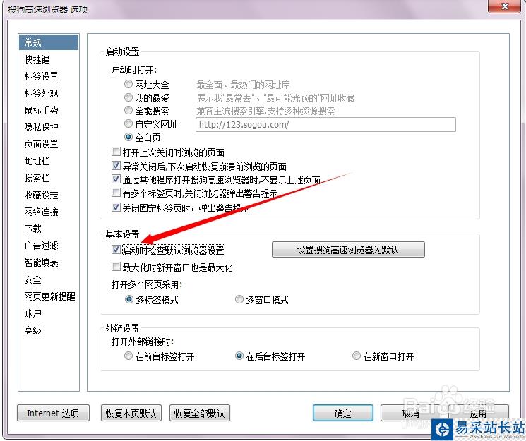 去掉選項(xiàng)【啟動(dòng)時(shí)檢查默認(rèn)瀏覽器】即可。