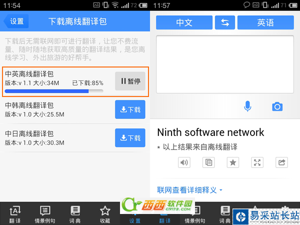 在“下載離線翻譯包”的界面中,用戶可以看到不同語言的翻譯包,有:中英翻譯包、中韓翻譯包以及中日翻譯包。用戶點擊“下載”就能把翻譯包進行下載了。下載完翻譯包之后,就可以使用翻譯包了。翻譯包的使用方法:回到翻譯界面,斷開網絡,直接輸入中文就能翻譯成英文了。