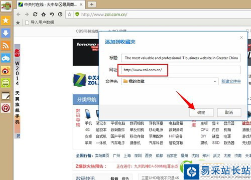 在收藏夾中,選擇“添加”即可將當前頁面收藏好。當然,您也可以將對應的地址做修改操作,設置完畢之后,點擊確定即可完成。