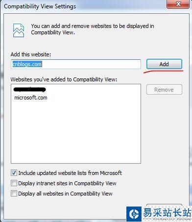 2. 在菜單欄中選擇Tools->Compatibility View Settings,在打開的窗口中將當前站點添加到兼容性視圖的列表中。