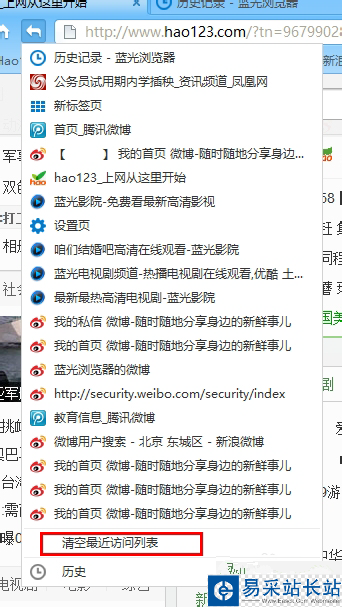 右擊“返回鍵”,則會出現下拉菜單,菜單中包括:最近打開的網頁、清空最近訪問列表功能、打開歷史記錄功能