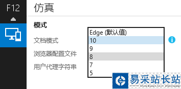 我們開啟F12開發(fā)者工具,然后找到“仿真”,這時,我們看到了文檔模式,如果你的win8.1已經(jīng)打過補(bǔ)丁,或者裝過相關(guān)的插件的話,那么你所看到的文檔模式里的兼容列表就是如上面圖片所顯示的,是完整的;但新裝的系統(tǒng)的兼容列表是沒這么齊全的,并且不能夠選擇,那么我們就無法調(diào)試網(wǎng)頁兼容性或者是以兼容模式查看一些網(wǎng)站了,此時我們可以從“工具”里面來設(shè)置: