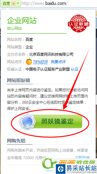 在這里我們可以看到相關的鑒定信息。這就是照妖鏡的鑒定結果,大家也可以給自己的網站或者其他的網站進行鑒定,這樣可以保證我們安全上網。