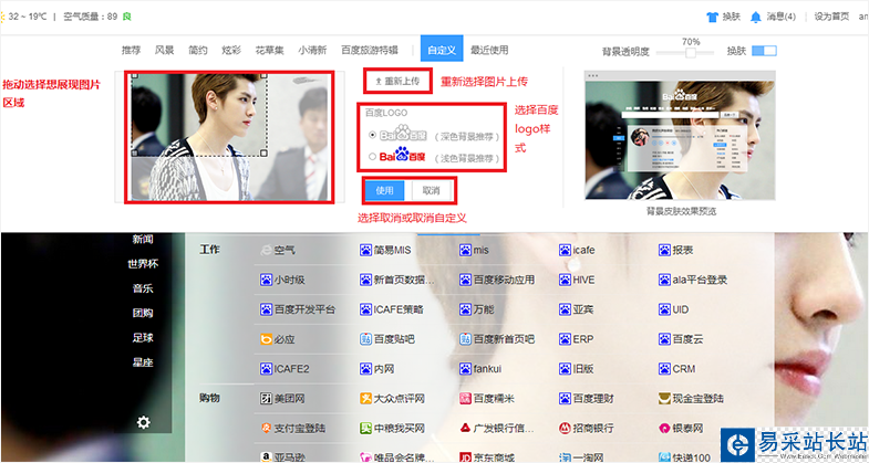 根據提示選擇拖動想要展現圖片區域,還能選擇喜歡的百度Logo樣式陪襯!