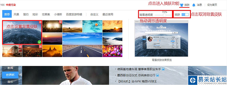 看膩白花花的背景?有一大波美麗皮膚正在逼近!點擊換膚,各種背景隨你挑!還能調節透明度,讓你的首頁隨