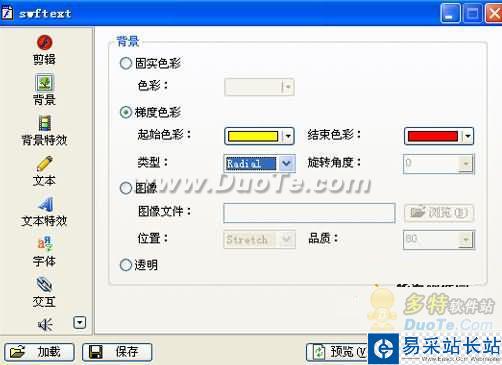 SWFText堪稱制作Flash特效文字的“傻瓜式”軟件,只要用戶根據導航欄中的項目順序進行操作就能輕松制作出Flash動畫。