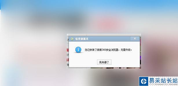 二、接下來360瀏覽器就會自動檢查更新(聯(lián)網(wǎng)環(huán)境下),如果當前已經(jīng)是最新版,則會提示,當前已經(jīng)是最新版,無需更新,如下圖所示: