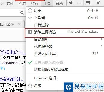 第二步:在工具的下拉上找到“清除上網痕跡”