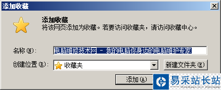 錯新站長站注:大家也可以使用快捷鍵Ctrl+D快捷鍵進行操作,即可直接彈出添加收藏這個窗口。