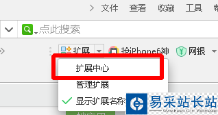 2、點擊瀏覽器右上角擴展,點擊擴展中心