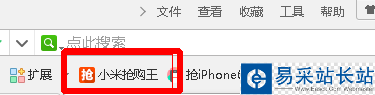 6、成功之后,在瀏覽器上方右側就能查看到小米搶購王按鈕,點擊進入