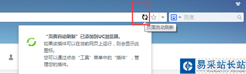 4、點擊添加完成后,如下圖所示:在網址欄的右邊,會顯示【頁面自動刷新】的圖標。