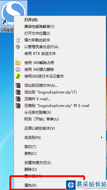 a、桌面找到搜狗瀏覽器圖標,右鍵查看屬性。