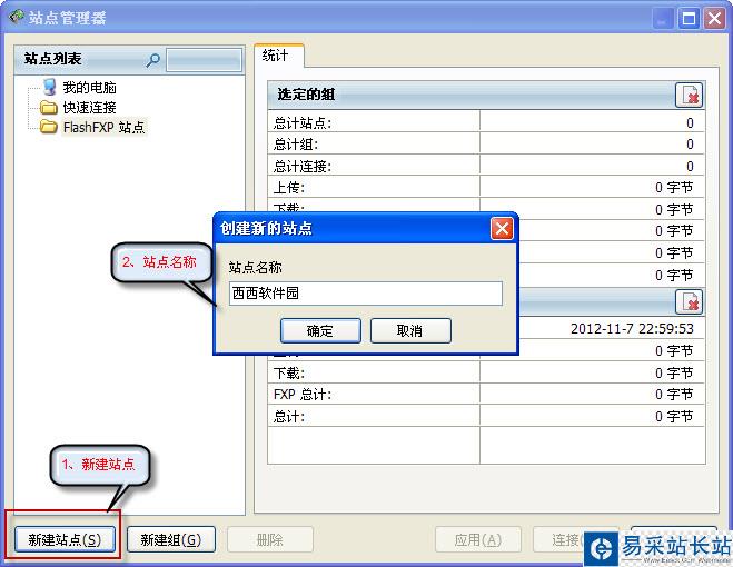 5.2、點(diǎn)擊“新建站點(diǎn)”按鈕,輸入站點(diǎn)名稱: