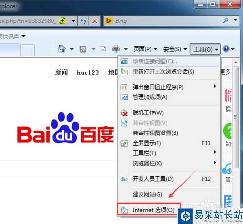2、點擊后,選擇下拉菜單里的Internet選項,如下圖所示。