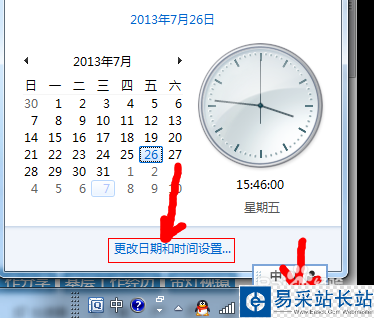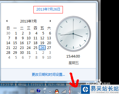 2、首先更改日期,點擊電腦右下角的日期和時間,出現如圖畫面