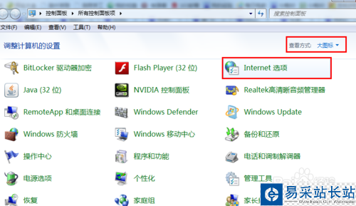 7、如果還是有問題,請做:控制面板—查看方式選"大圖標"—internet選項