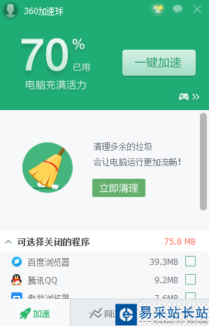 方法一:360瀏覽器開太多標簽占用了內存問題,并且隨著瀏覽器開著的時間越長,占用內存量就越大。我們可以使用360安全衛士的加速器讓不必要的進程釋放。