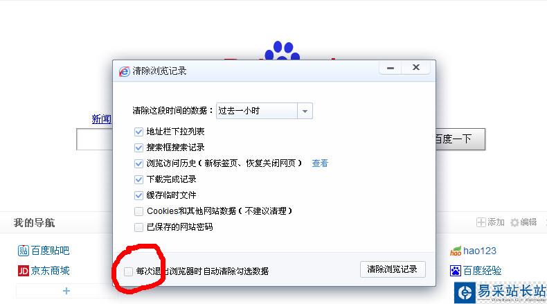 3、或者大家可以選擇在每次推出瀏覽器的時(shí)候自動(dòng)清除數(shù)據(jù),這樣就不要你每次要進(jìn)行步驟1和2的操作。