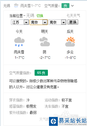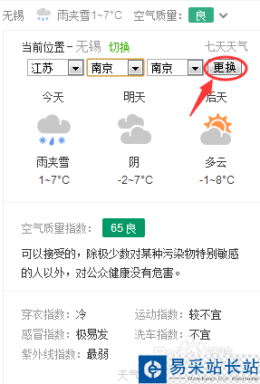 4、城市選擇完成后,點擊【跟換】按鈕,完成城市天氣切換,如圖所示: