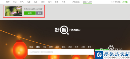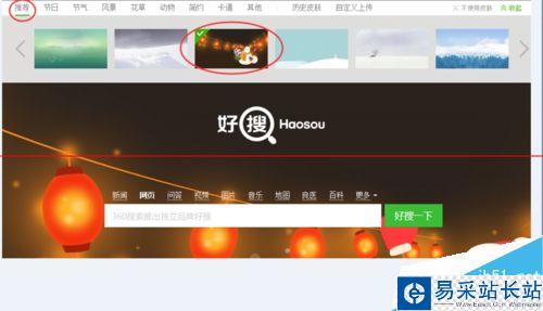 3、點擊推薦類別下的圣誕圖片,好搜的皮膚就會變成圣誕皮膚,如圖所示: