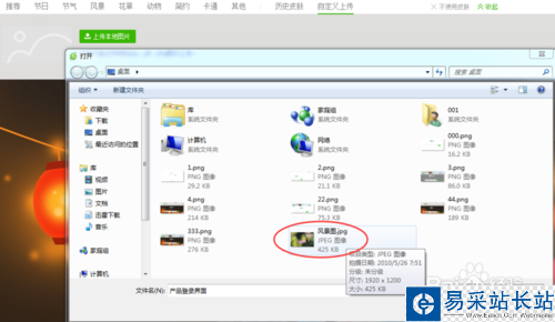 4、如果想使用電腦中的圖片做為皮膚,可以點擊皮膚界面上的【自定義上傳】按鈕,上傳本地圖片,上傳過程如圖所示: