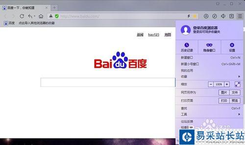 2、在瀏覽器界面點(diǎn)擊右上角的【菜單】按鈕,彈出菜單界面,如圖所示: