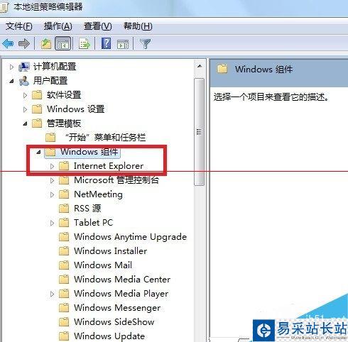 4、windows組件下面找到“Internet Explorer”然后雙擊它。