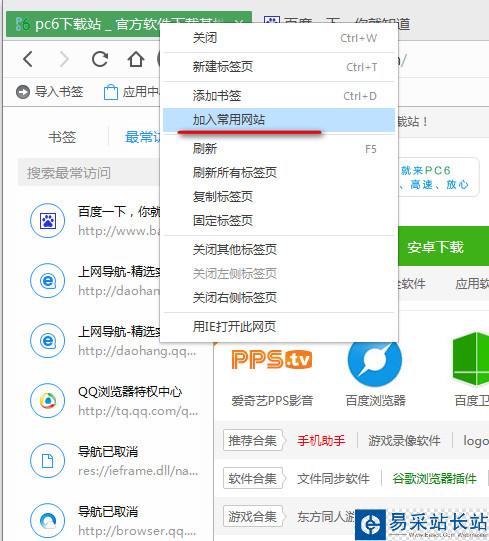 2、然后我們右擊網站的標簽,就會出現“加入常用網站”