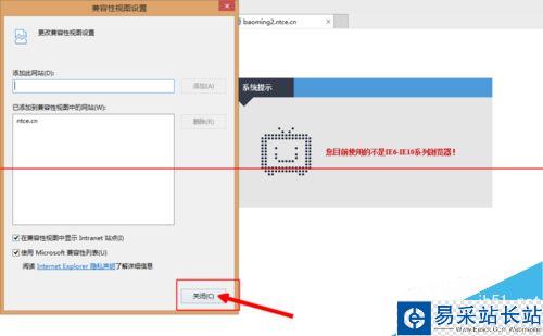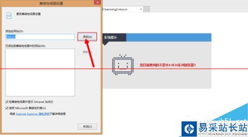 4、在“添加此網(wǎng)站”后,直接點擊“添加”,把該網(wǎng)站添加到兼容性視圖中,點擊“關閉”
