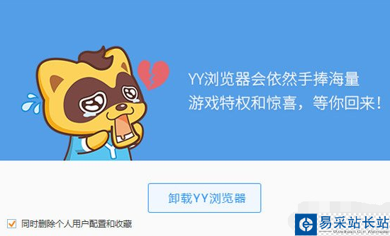 選擇“同時刪除個人用戶配置和收藏”點擊“卸載YY瀏覽器”這樣我們就卸載它啦。