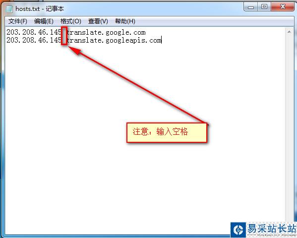 (2)在加入如下兩行(IP地址與網址之間必須有一空格):點擊“文件”→“保存”