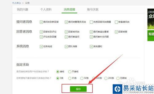 4、然后消息設(shè)置里面有很多,看你需要,你可以將你不需要的給勾選了,然后保存。
